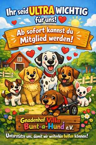 Du würdest gerne Teil vom „Gnadenhof Villa Bunt-a-Hund e.V.“ werden?